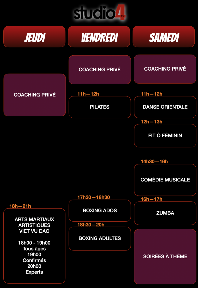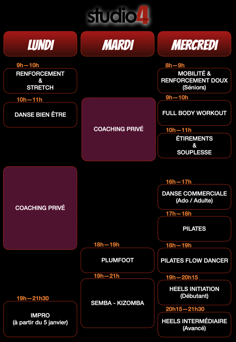 PLANNING DES COURS | INFOLINE : 07 83 77 08 35
