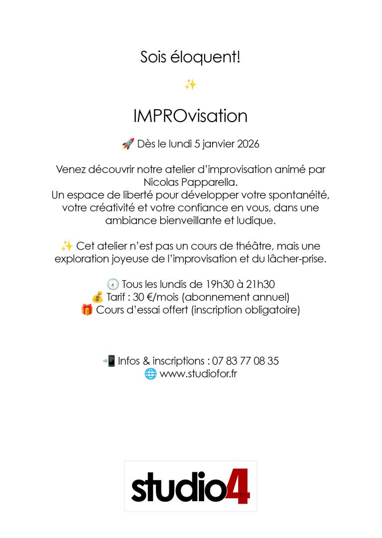 COURS & ATELIERS | INFOLINE : 07 83 77 08 35